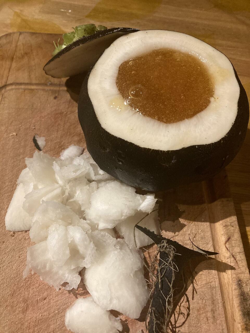 - Uurista sisu välja (võid nt salatiks kasutada). Jäta 10-30mm paksune sein. (mida paksem sein, seda rohkem mahla ja vitamiine)